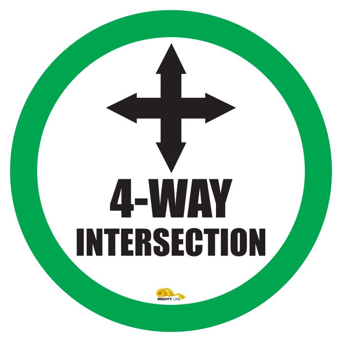 4 Way Intersection Mighty Line Floor Sign, Industrial Strength, 36" Wide. Mighty Line safety floor signs are a great floor marking tool. Mighty Line floor signs are perfect solutions for 5s facilities, lean operations, and for warehouse safety.
