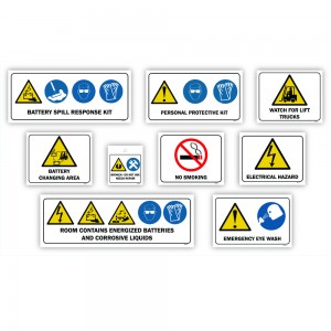 The package features nine separate warning signs that feature large symbols that can be easily understood regardless of the language spoken by the observer. They feature laminated surfaces that are easy to clean and are available on intermediate vinyl mounted on 020 Thin PVC.