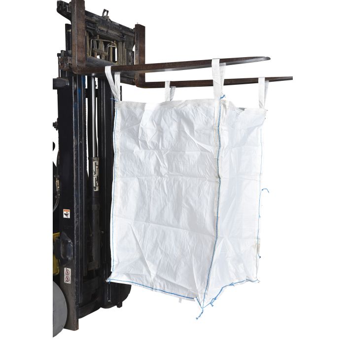 These hoppers provide an economical and convenient means for storing and moving dry bulk commodities. The coated polypropylene has a polyester webbing for extra strength. The 8 oz. white fabric is UV treated. Fold for easy storage when not in use. The 4 corner straps provide convenient fork lift handling. Capacity 3300 lbs.