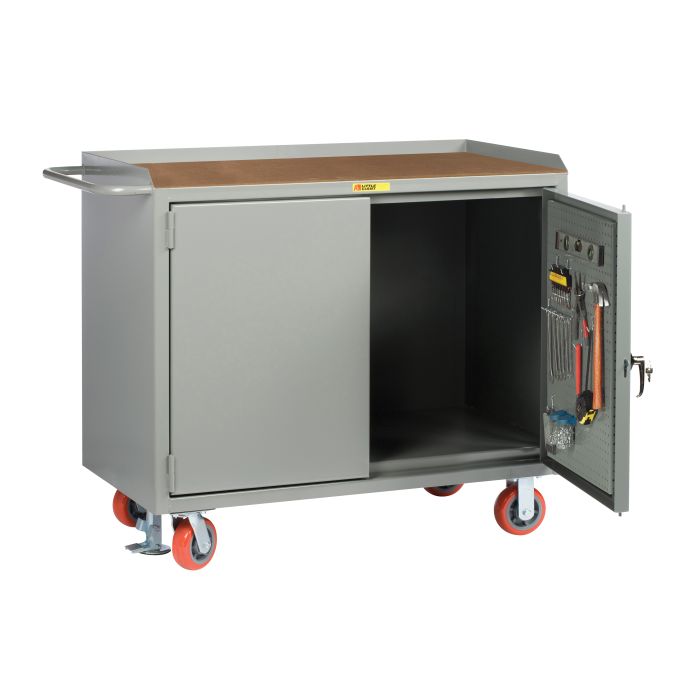 Little Giant Mobile Bench Cabinets with Pegboard or Louvered Panel Doors MH2448PBDFL