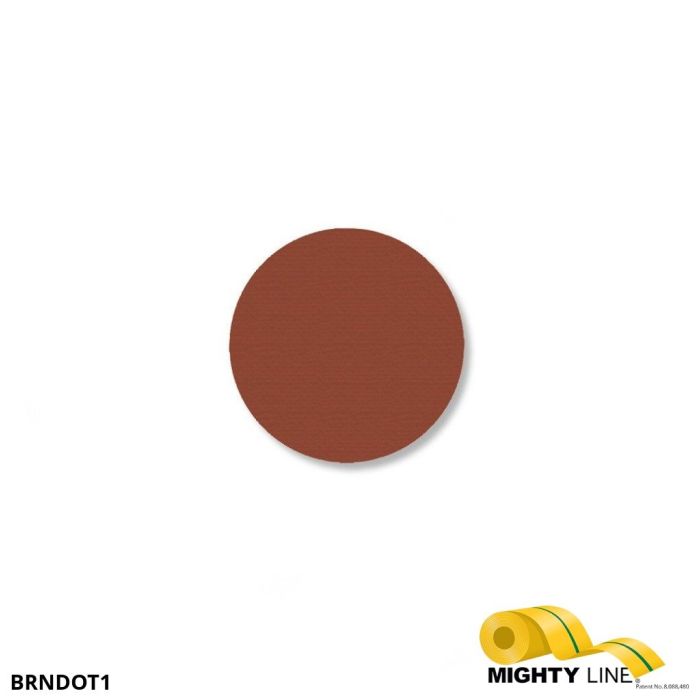Brown Mighty Line Floor Dots, 1" wide, pack of 200. These Mighty Line dots are a great floor marking tool. Often, dots are used at dock doors to create a line. Users also build curved lines on their floor with the Mighty Line floor dots. Dots are highly recommended when forklifts are constantly dragging skids. These floor dots do not leave residue when you remove. To apply the dots, peel and stick the adhesive backing to a clean area of the floor.