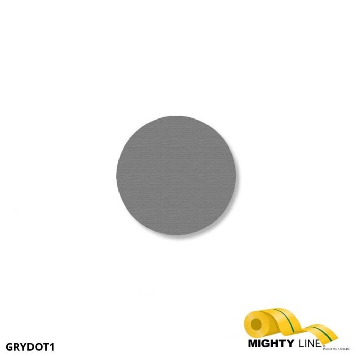 Grey Mighty Line Floor Dots, 1" wide, pack of 200. These Mighty Line dots are a great floor marking tool. Often, dots are used at dock doors to create a line. Users also build curved lines on their floor with the Mighty Line floor dots. Dots are highly recommended when forklifts are constantly dragging skids. These floor dots do not leave residue when you remove. To apply the dots, peel and stick the adhesive backing to a clean area of the floor.