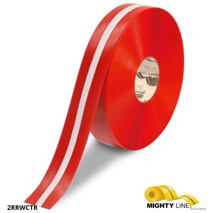 Mighty Line 2" Red Tape with White Center Line, 100' Roll 2RRWCTR