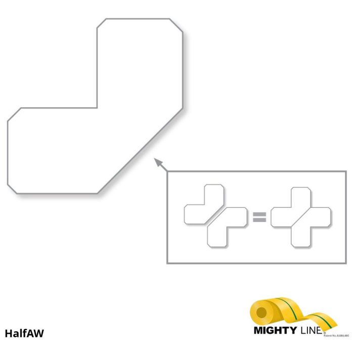 White Patented Mighty Line Floor Tape & Floor Marking 2" white floor marking Half Angle. There are 100 Half Angles or 50 X's to a pack. Our Mighty Line floor half angles have a 3 year limited warranty. Our floor marking half angles are great for 5s environments and for pallet markings.