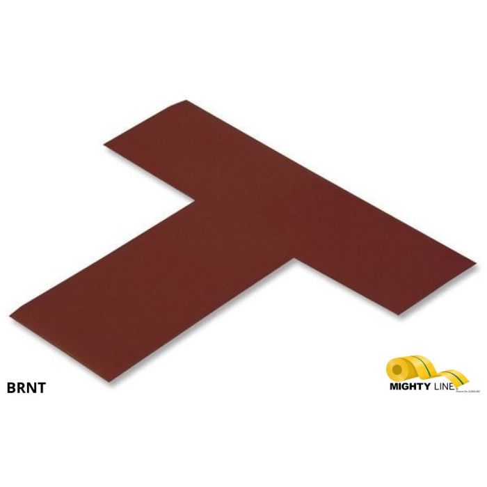 Brown Mighty Line Floor Tape Ts, 6"x6"x2", pack of 100. These Ts are powerful floor marking tool. The beveled edge and 50 MIL thickness of the floor tape helps to withstand industrial traffic for a warrantied 3 years. The Ts do not leave residue upon removal. The patented floor marking material can be used to mark off areas on your floor. These T shapes help to keep inventory, tools, and workers organized.