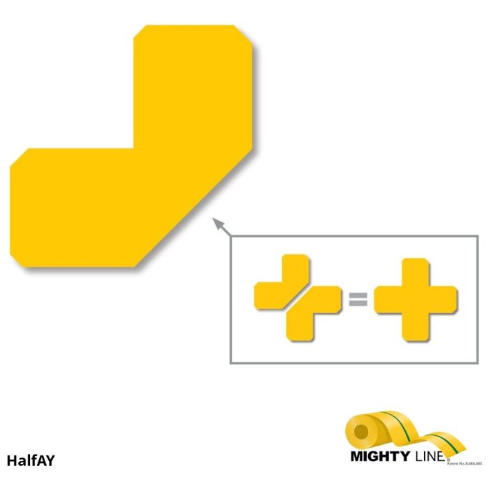 Yellow Patented Mighty Line Floor Tape & Floor Marking 2" white floor marking Half Angle. There are 100 Half Angles or 50 X's to a pack. Our Mighty Line floor half angles have a 3 year limited warranty. Our floor marking half angles are great for 5s environments and for pallet markings.