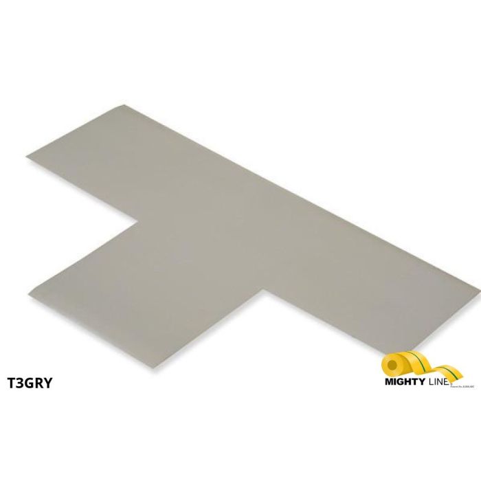 Grey Mighty Line Floor Tape Ts, 9"x6"x3", pack of 100. These Ts are powerful floor marking tool. The beveled edge and 50 MIL thickness of the floor tape helps to withstand industrial traffic for a warrantied 3 years. The Ts do not leave residue upon removal. The patented floor marking material can be used to mark off areas on your floor. These T shapes help to keep inventory, tools, and workers organized.