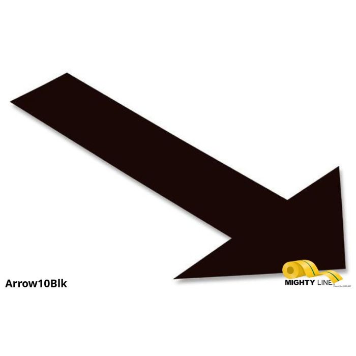 Black Mighty Line Floor Arrows are 10" by 6". Mighty Line arrows are a great floor safety marking tool. These arrows are warrantied to stay on your floor for 3 years and can withstand industrial wheel traffic. Mighty Line floor marking arrows can point pedestrians towards safety in emergency situations.