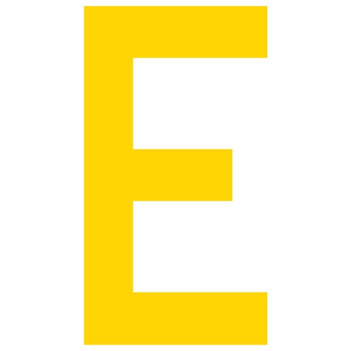 Yellow Mighty Line Floor Tape E, 4.5"x10", pack of 10. These letters and numbers are powerful floor marking tool. The low profile and 20 MIL thickness of the adhesive floor shape helps to withstand industrial traffic. The letters and numbers do not leave residue upon removal. These T shapes help to keep inventory, tools, and workers organized while allowing for constant industrial traffic. This product comes in a pack of 10.