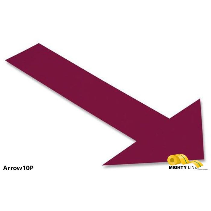 Purple Mighty Line Floor Arrows are 10" by 6". Mighty Line arrows are a great floor safety marking tool. These arrows are warrantied to stay on your floor for 3 years and can withstand industrial wheel traffic. Mighty Line floor marking arrows can point pedestrians towards safety in emergency situations.