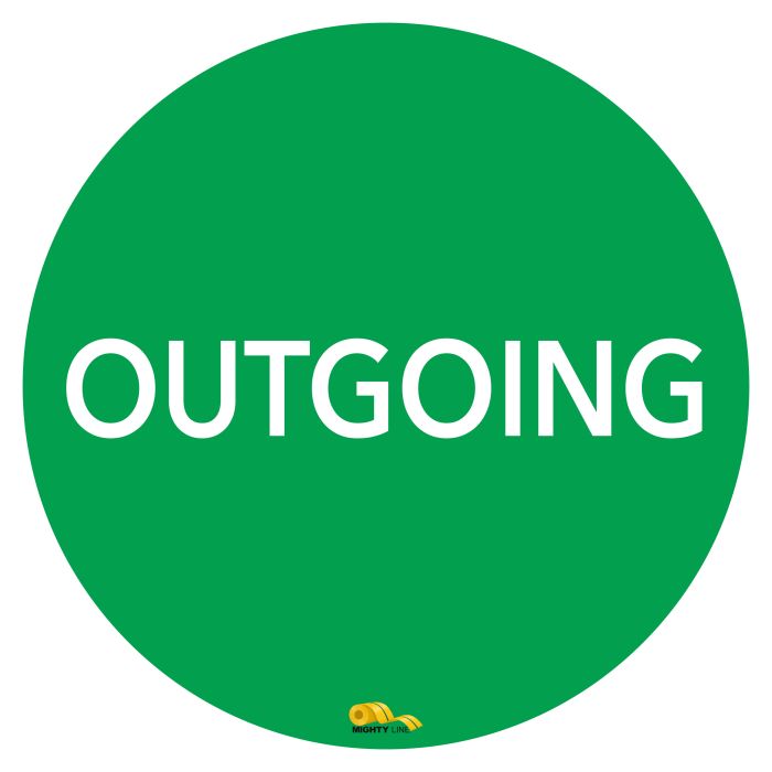 Outgoing, Mighty Line Floor Sign, Industrial Strength, 12" Wide. Mighty Line safety floor signs are a great floor marking tool. Mighty Line floor signs are perfect solutions for 5s facilities, lean operations, and for warehouse safety.