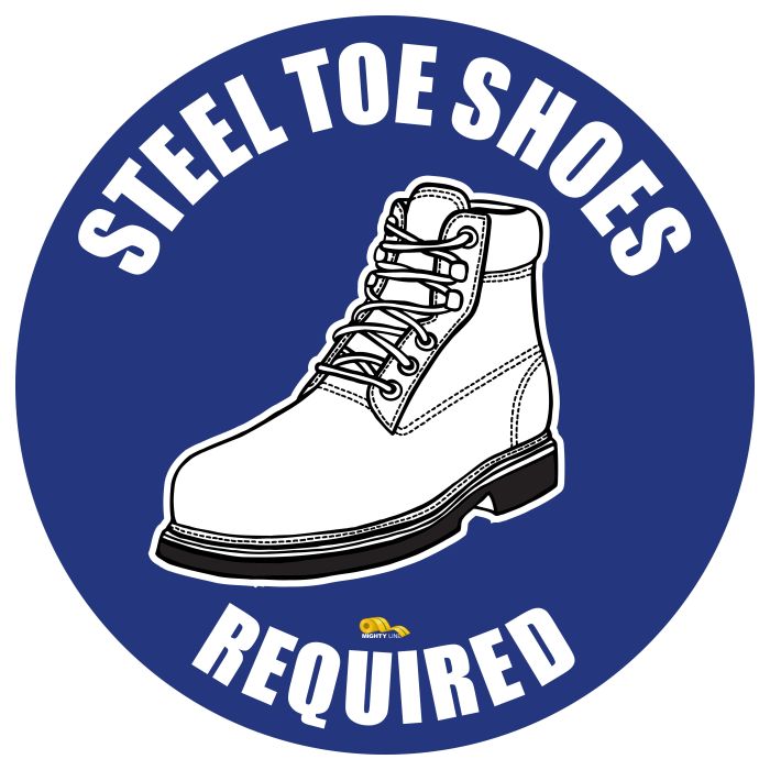 Steel Toes Required, Mighty Line Floor Sign, Industrial Strength, 16" Wide. Mighty Line safety floor signs are a great floor marking tool. Mighty Line floor signs are perfect solutions for 5s facilities, lean operations, and for warehouse safety.